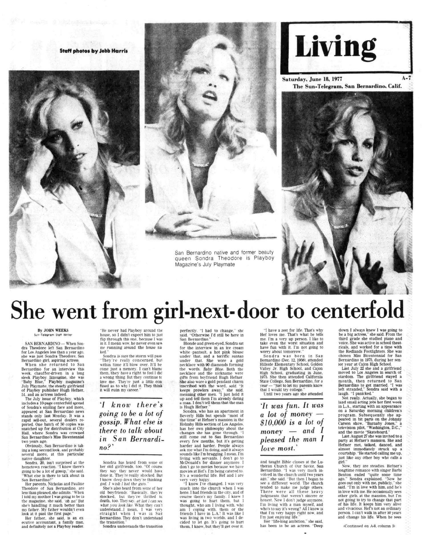 Categories Sondra Theodore Sondra in newspaper article Post author By R Wakeman Post date February 7, 2022 No Comments on Sondra in newspaper article Sondra Theodore, Playmate of the Month July 1977, in San Bernardino Sun-Telegram, June 1977 Tags Playmate, Sondra Theodore